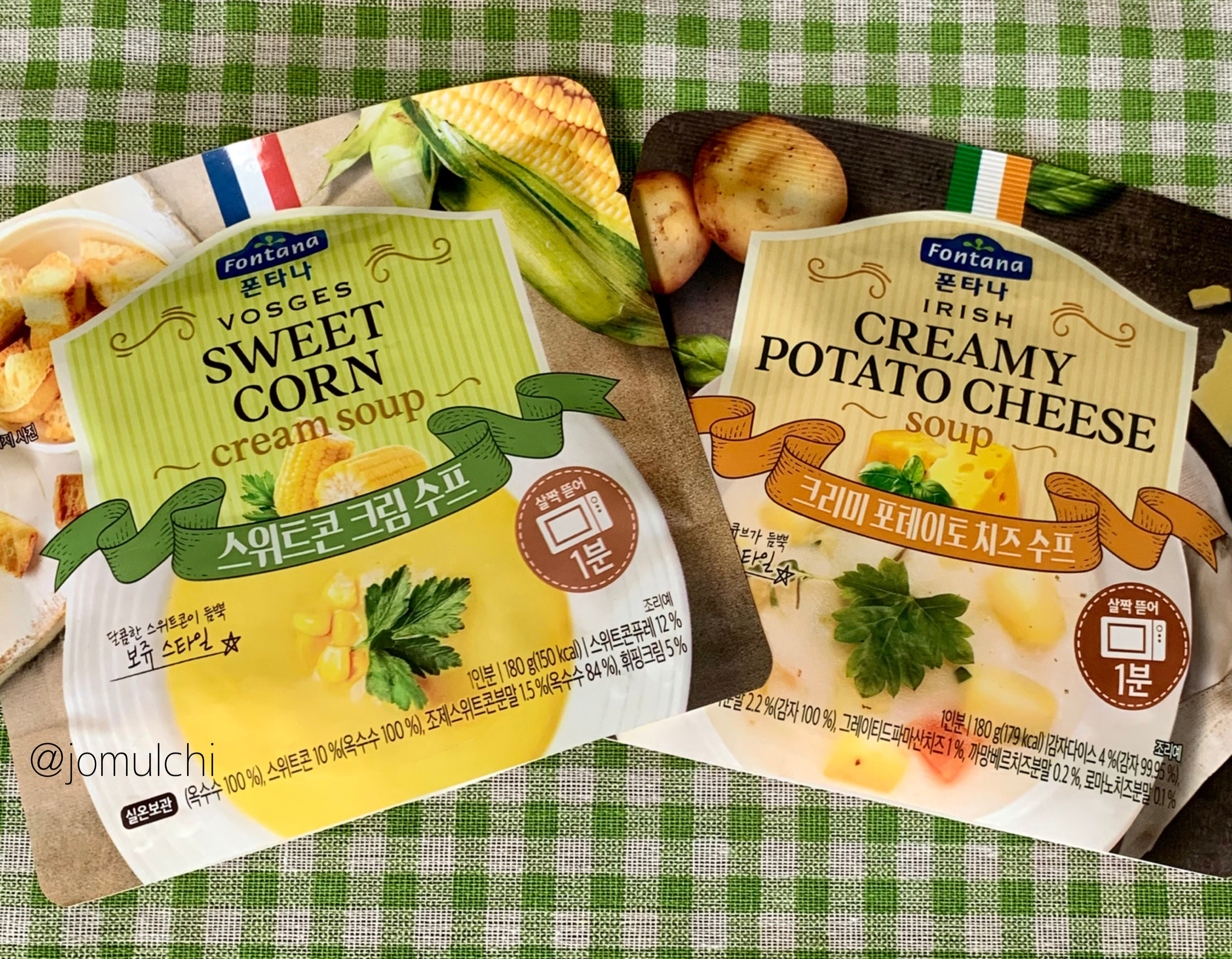 아침에는 간단하게 ‘폰타나 수프’를 먹을 것이다. 마트에서 1+1 이벤트를 진행하고 있어서 스위트콘 크림 수프와 크리미 포테이토 치즈 수프를 구매해 봤다.