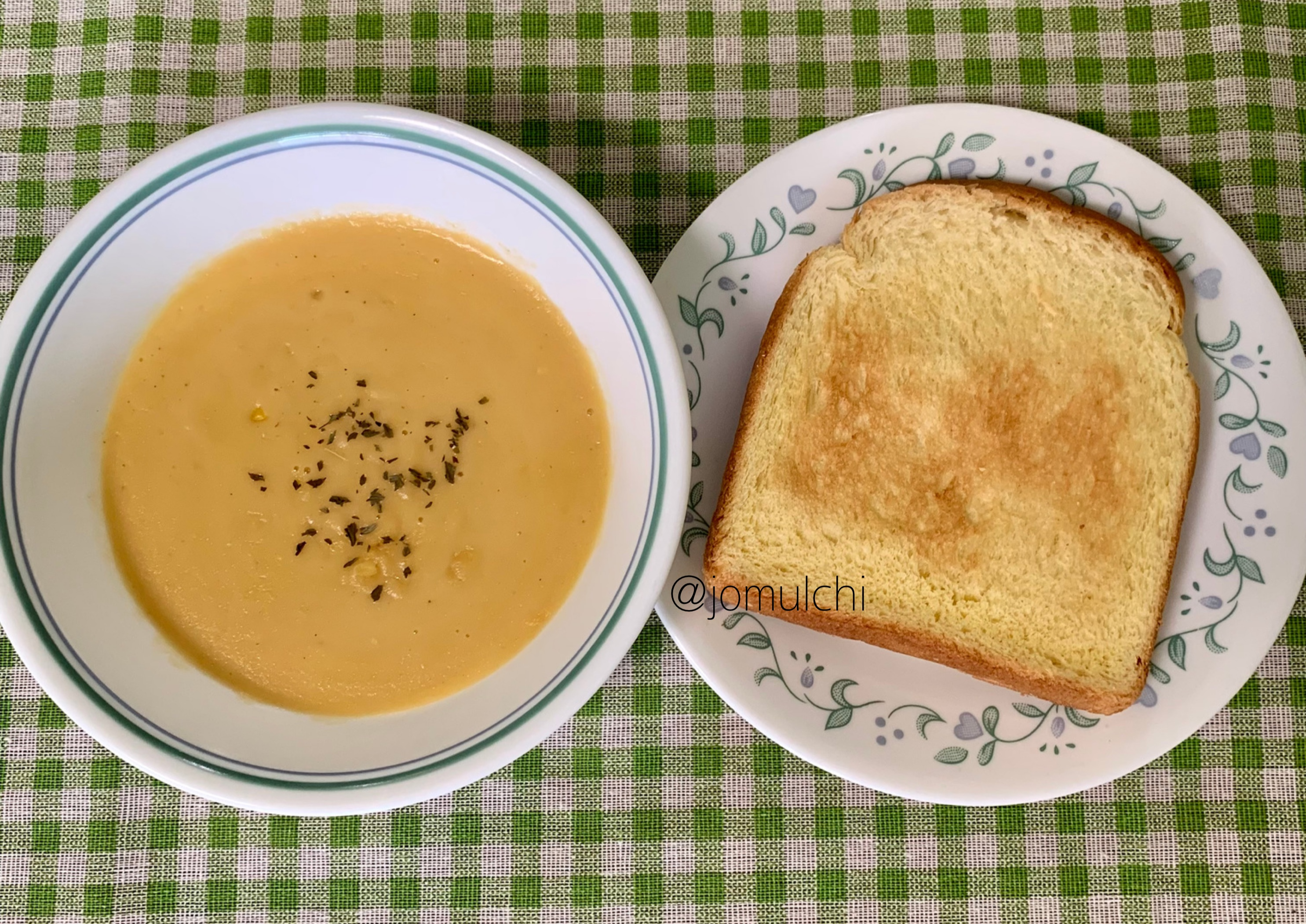옥수수 수프에 옥수수 식빵이라니, 노리고 구매한 것은 아니었지만 나름 기대가 되었다.