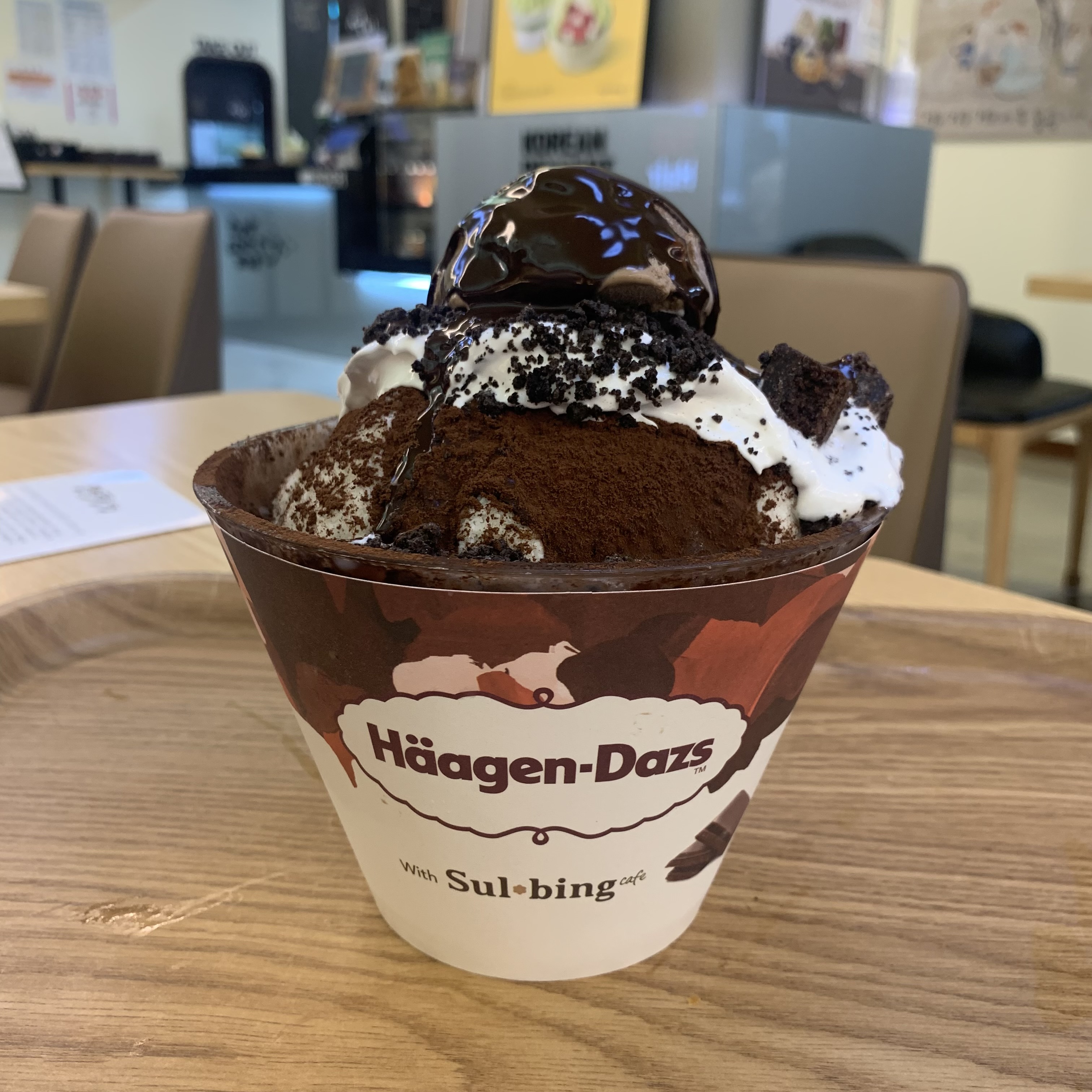 하겐다즈 초코설빙은 치즈큐브를 뺀 초코브라우니설빙 위에 하겐다즈 아이스크림이 올라간 맛이다.