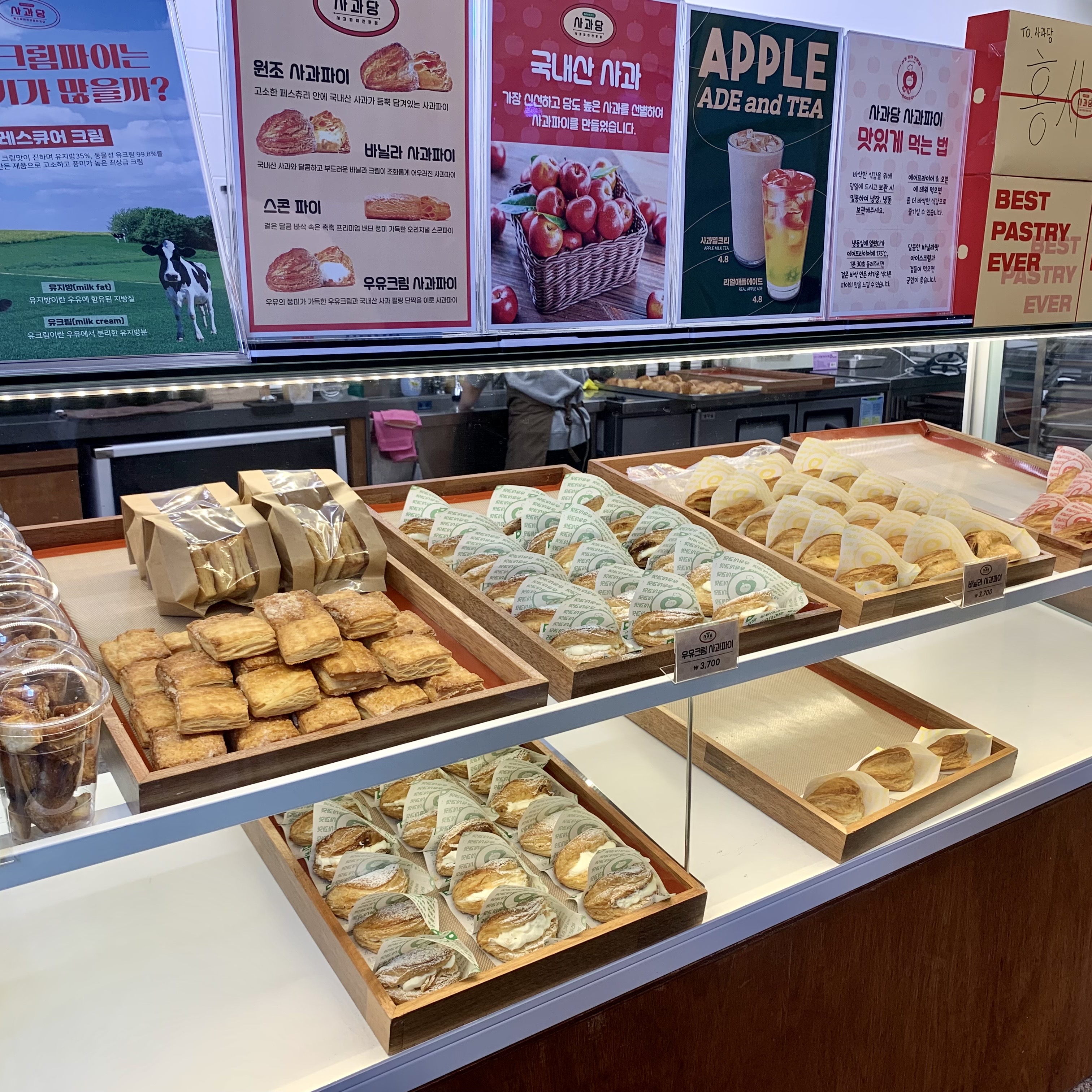 사과파이를 판매하는 곳이며 원조, 바닐라, 우유크림 맛이 있었다.