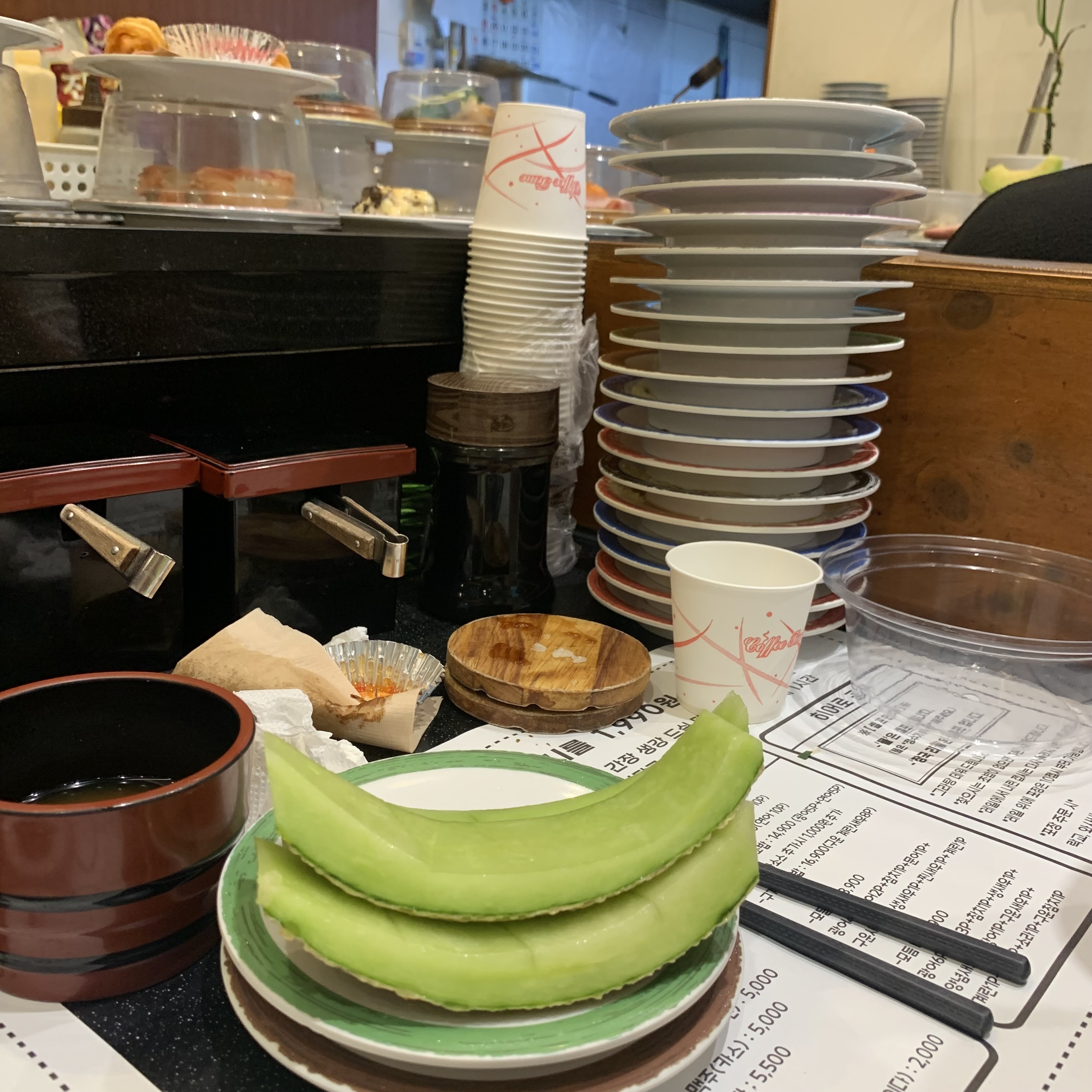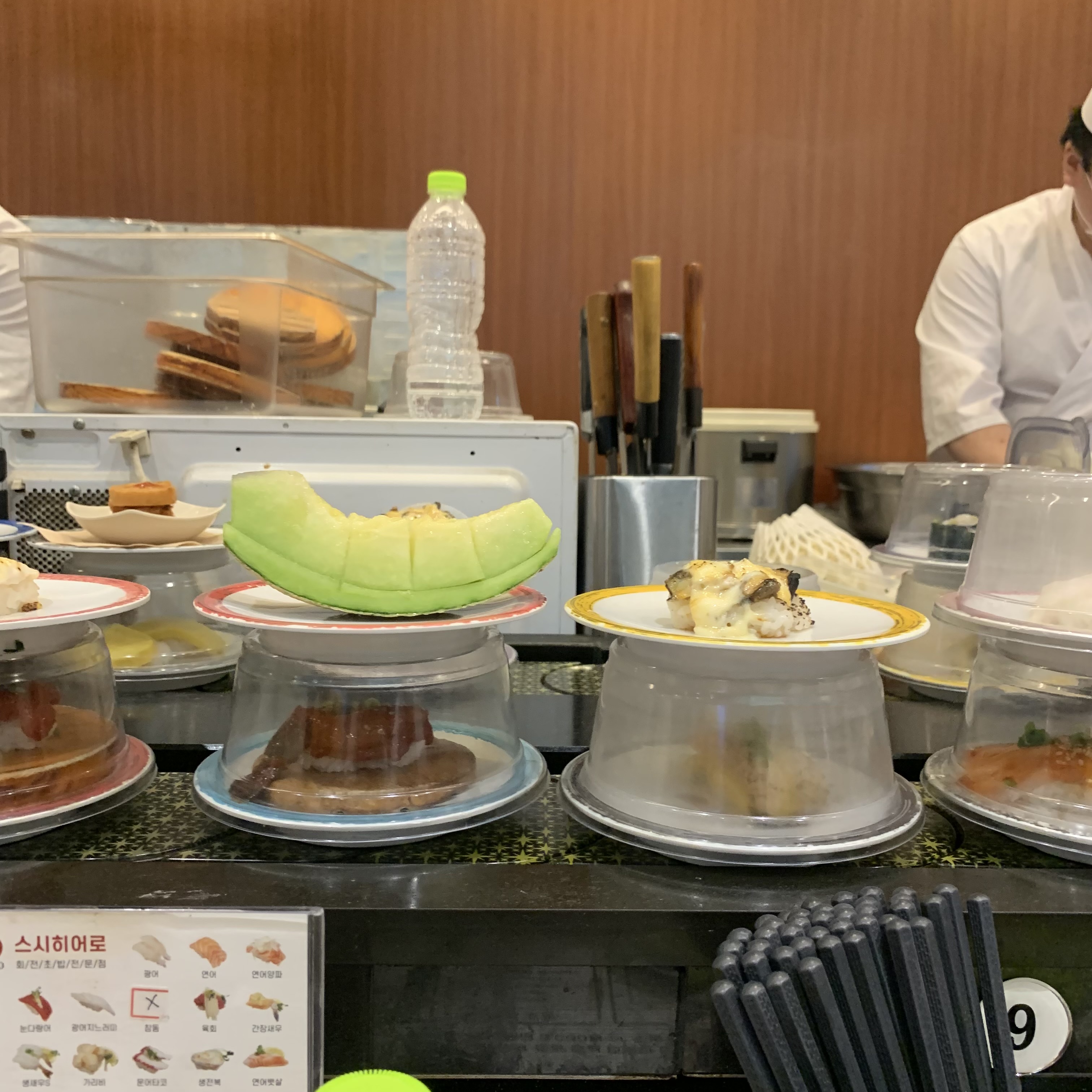 대신 1인칭 시점으로 찍어보았는데 앞쪽에는 사진과 같이 초밥 레일이 돌아가고 있다.