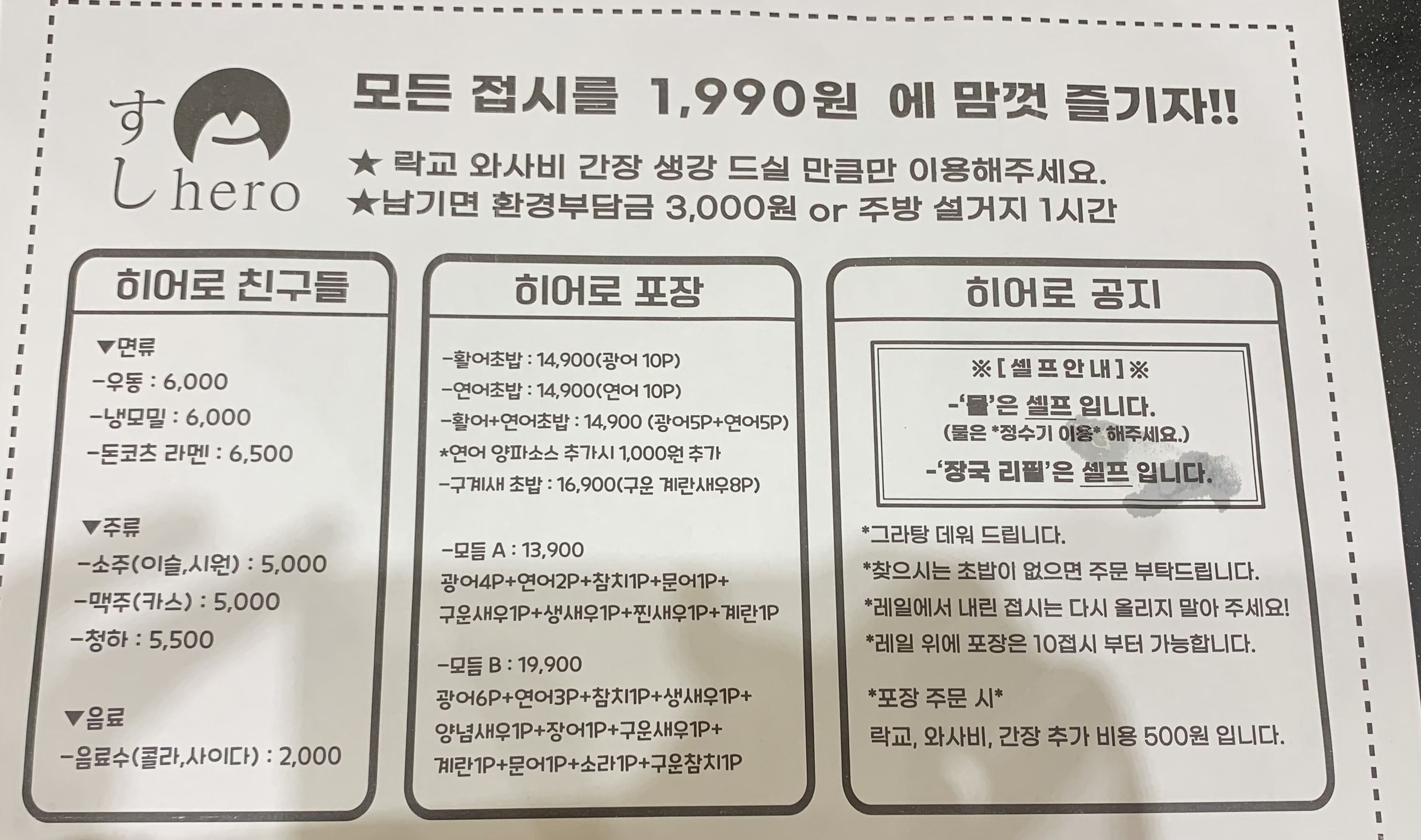 초밥이 입안 가득 채워질 때 그 만족감을 말로 설명할 순 없지만, 스시히어로를 접하고 나서부터는 다른 초밥집은 성에 차지 않을 만큼 정말 애정 하는 곳이다.