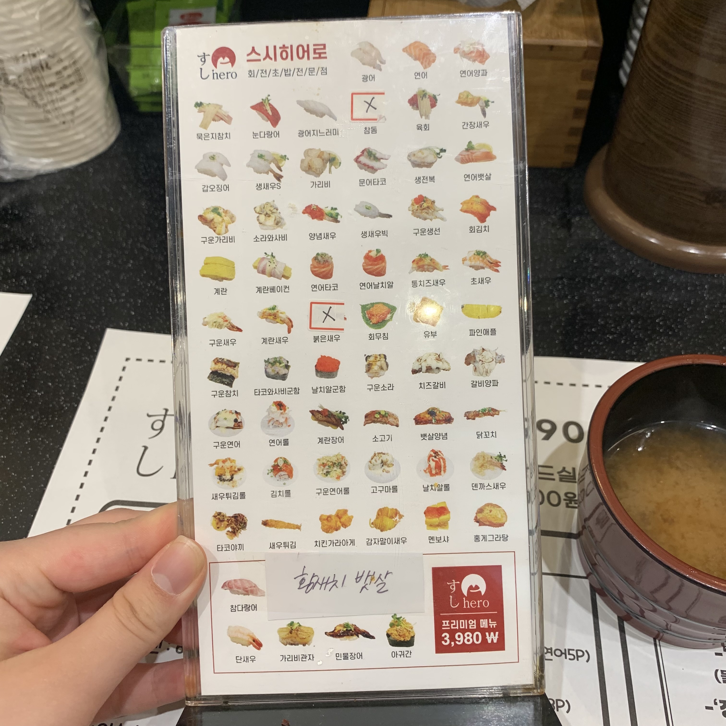 먹고 싶은 초밥이 안 보이면 메뉴판을 보고 주문하면 된다.