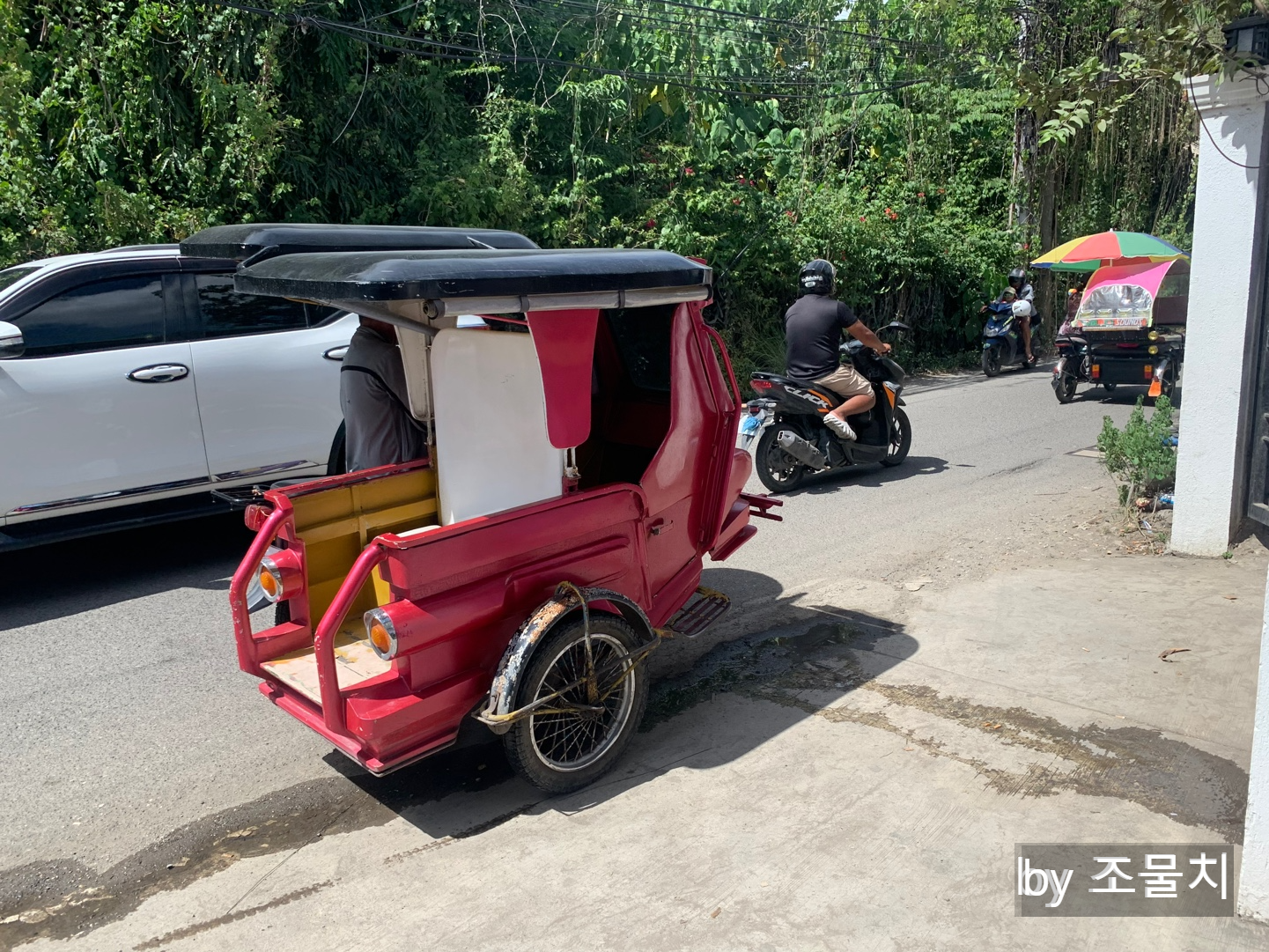 라라완 바다는 CG 스파르타 캠퍼스에서 트라이시클(tricycle)을 타고 7분 정도 소요된다.