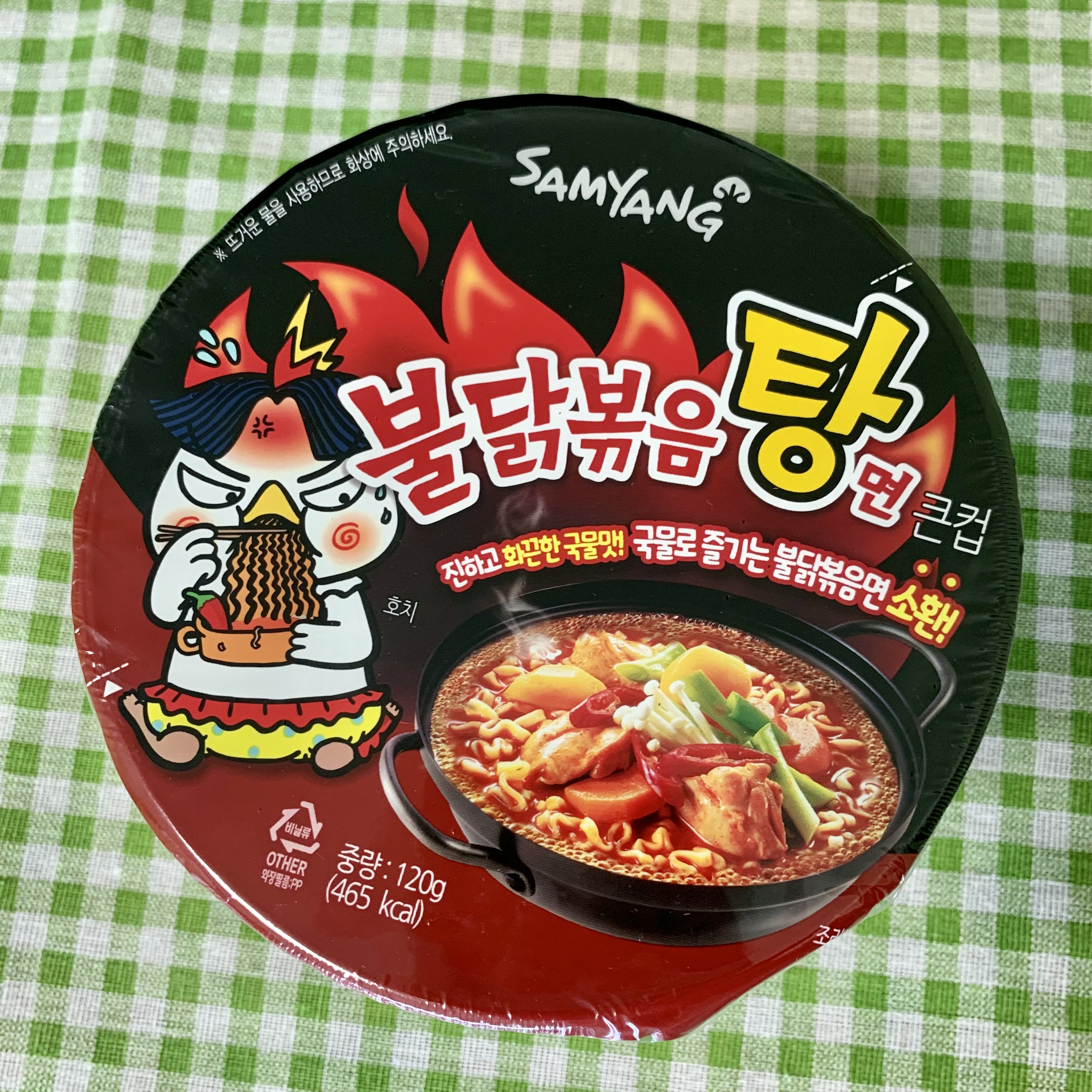 고등학생 때 매운 음식이 생각날 때면 친구들과 학교 옆 마트로 달려가 붉닭볶음탕면과 삼각김밥을 사서 기숙사에서 다같이 군것질을 하던 시절이 있었다. 그 당시 맛있게 먹었던 기억이 있어서 재출시 소식을 듣고 구매하게 되었다. 조리방법: 뚜껑을 반절 열고 액상스프와 분말스프를 꺼낸다. 용기 안쪽 선까지 끓는 물을 부은 후, 뚜껑을 닫고 4분간 기다린다. 액상스프와 분말스프를 넣고 잘 저어 먹는다. 나는 불닭볶음탕면의 두꺼운 면발과 눅진한 국물의 조합이 참 좋다. 학창 시절에 먹었던 불닭볶음탕면을 떠올려보면 매웠던 기억이 가장 크게 남아있었지만 오랜만에 한 입을 먹어보니 매운맛보다는 단 맛이 먼저 강하게 느껴졌다. 생각보다 달달한 맛에 매운맛이 비교적 덜 느껴졌으며 다 먹었을 때쯤 거울을 보았는데 여전히 맵기..